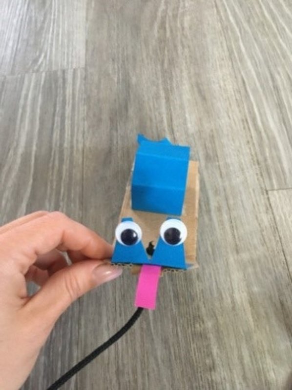 Do ruličky od toaletního papíru uděláme dírku a provlečeme druhou stranu šňůrky.