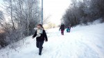 Od altánu jsme vyrazili po červeném značení k rozhledně Pastýřka. Zde už cesta nebyla ujetá, ale kluci ze 7. třídy sami začali prošlapávat pěšinu ve sněhu.