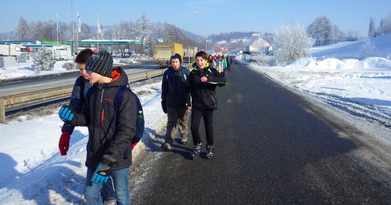 Ve středu 30. ledna se žáci ze 6., 7. a 8. třídy zúčastnili zimní vycházky s přírodovědným zaměřením. Vlakem jsme dojeli do Moravské Třebové. Teplota v tu dobu byla –9 ºC.
