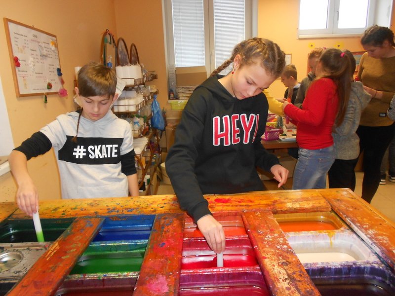 Na programu byla návštěva vánočních trhů a hlavně svíčkárny Rodas. Zde si žáci vyrobili krásné vánoční dárky. Obarvili si svíčky, odlili ozdobu z vosku a namíchali koupelovou sůl.